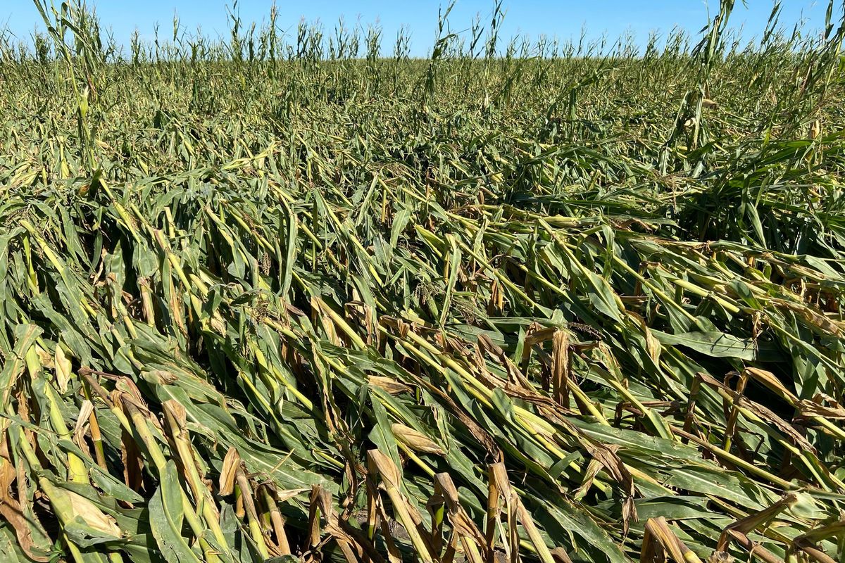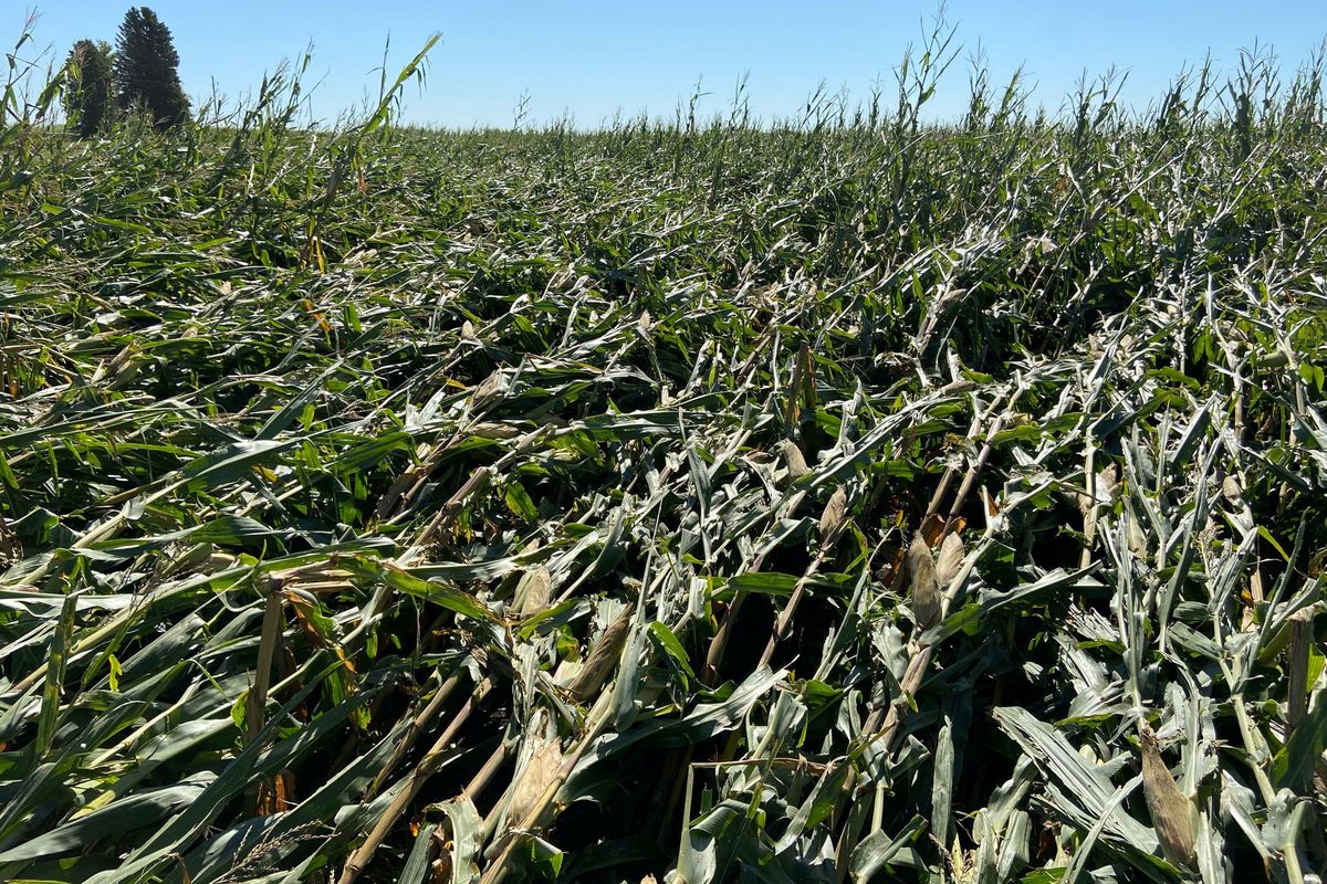 "We have got everything from corn that is laying completely flat - that is basically a total loss - to corn that has not been affected at all, to everything in between," Schmitt said.