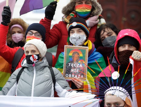The case has highlighted the clash over social issues in predominantly Catholic Poland. The country's right-wing government supports laws against insulting religious beliefs and symbols. LGBT rights advocates say the laws are used to stifle human rights and freedom of speech.