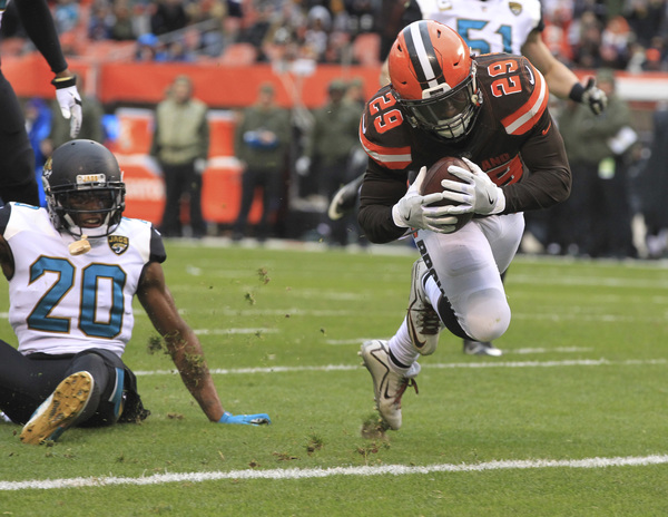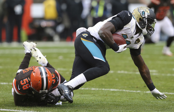 The Browns rushed 18 times for 50 yards (2.8 average). Jaguars rookie running back Leonard Fournette rushed 28 times for 111 yards (4.0 average).