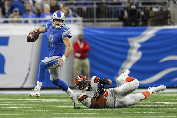 The Browns trailed the Lions 17-10 at halftime after botching a precious scoring opportunity at the end of the first half by attempting a quarterback sneak with Kizer from Detroit's 2 with no timeouts left and 15 seconds on the clock.