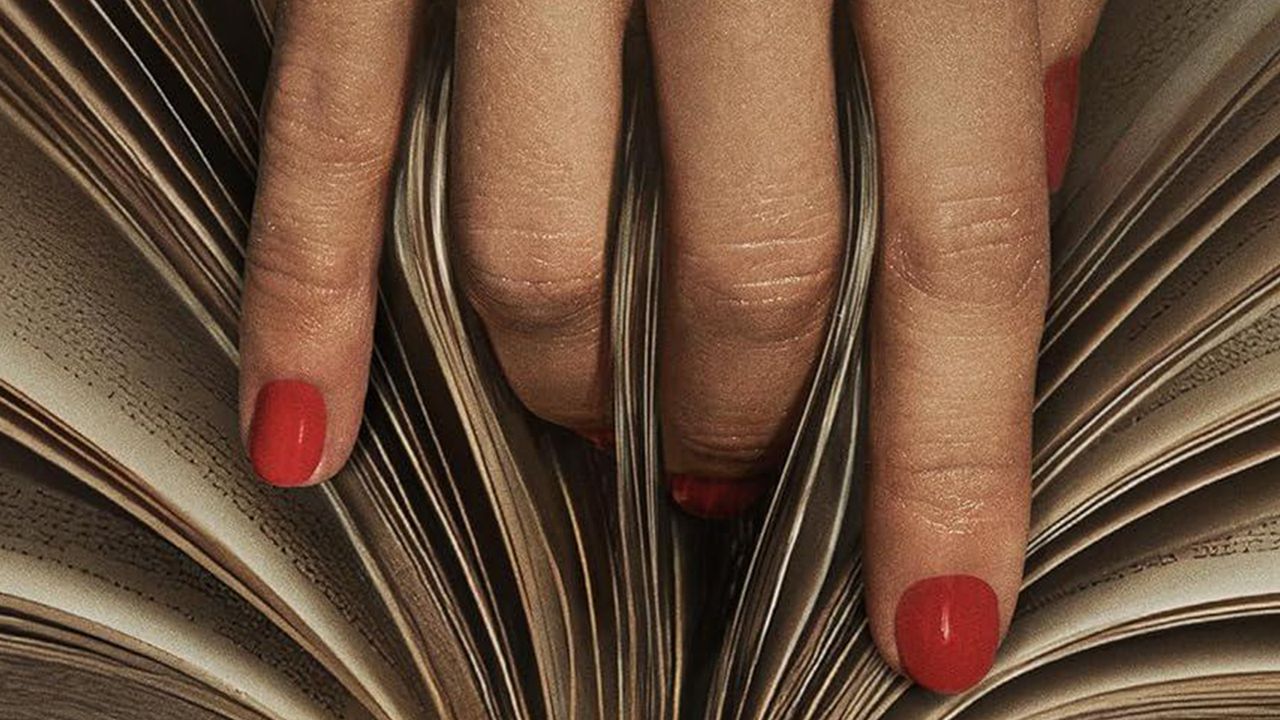 The poster in question features a spread book with a woman's hand suggestively splitting its pages. The colour palette is kept simple with sultry reds and mossy green, which contrast against the delicate baby pink cursive typography. (My only creative gripe is the Netflix logo smacked in the centre, but something tells me this was a non-negotiable addition).