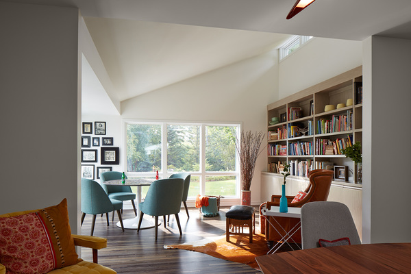 "They wanted more space, but we didn't want to go up and lose the look of midcentury modern," said Peterson. "And the lot was big enough to bump out."