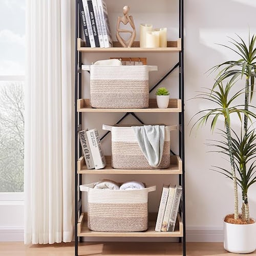 Hiding clutter in plain sight is a total breeze when you have these baskets. They’re made from soft cotton rope, with a three-tone color block design that makes them a stylish addition to any countertop, shelf, or even nightstand. And if you ever decide you no longer need them? Simply fold them down flat for easy storage.