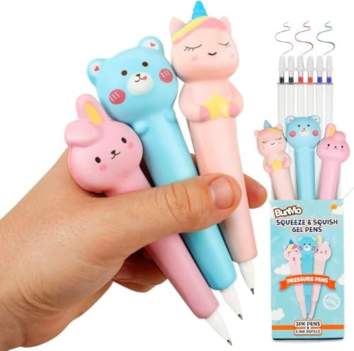 BUNMO Cute Pens - Cute Fun Pens w/Soft Grip & 6 Refills - Gifts for Tweens - Fun Writing for Kids - Gift for Teens - Squishies for Kids - Squishy 3 Pack