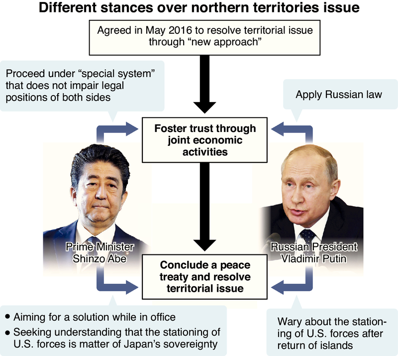 Abe is aiming to first deepen the relationship of trust with Russia through joint economic activities in a bid to conclude a peace treaty and resolve the northern territories issue while in office.