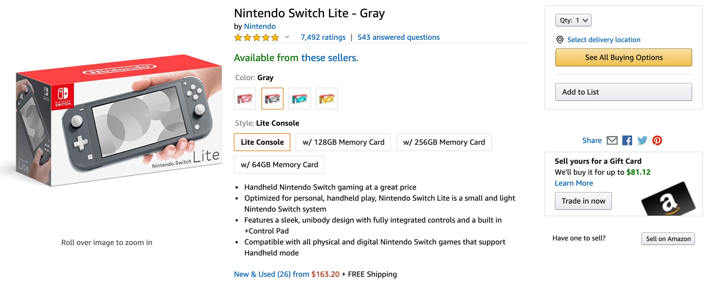When you go to a product page on Amazon, there’s a main “Add to Cart” button. Amazon weighs seller ratings, shipment speeds, and prices to determine who “wins” this Buy Box. Unsurprisingly, Amazon or sellers who use its fulfillment centers win thanks to their ability to ship within two hours to two days.