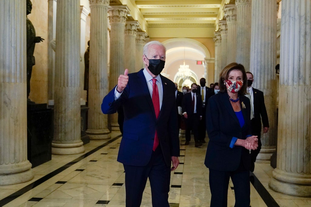President Joe Biden has pledged at the Capitol to “get it done” as Democrats strained to rescue a scaled-back version of his $3.5 trillion government-overhaul plan and salvage a related public works bill after days of frantic negotiations.