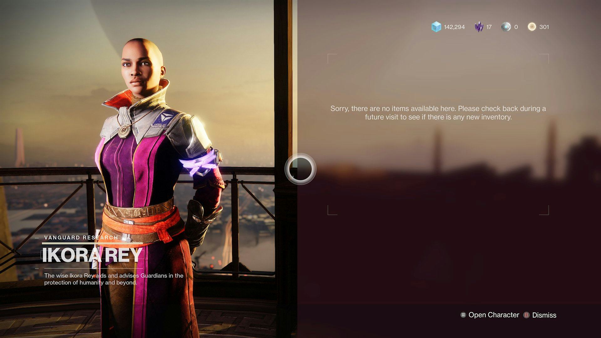 Particularly, in the Destiny 2 era, Ikora has almost entirely faded into obscurity. Whereas Zavala is in the main courtyard where you spawn in at the Tower ready to shower you in praise, bounties, and loot, Ikora is off in the western Bazaar area, gazing out over the horizon with “no items available.” You can technically interact with her, but there’s no reason to. It’s weird, to say the least, which is to say nothing for how problematic it is to sideline the only Black woman in the cast.