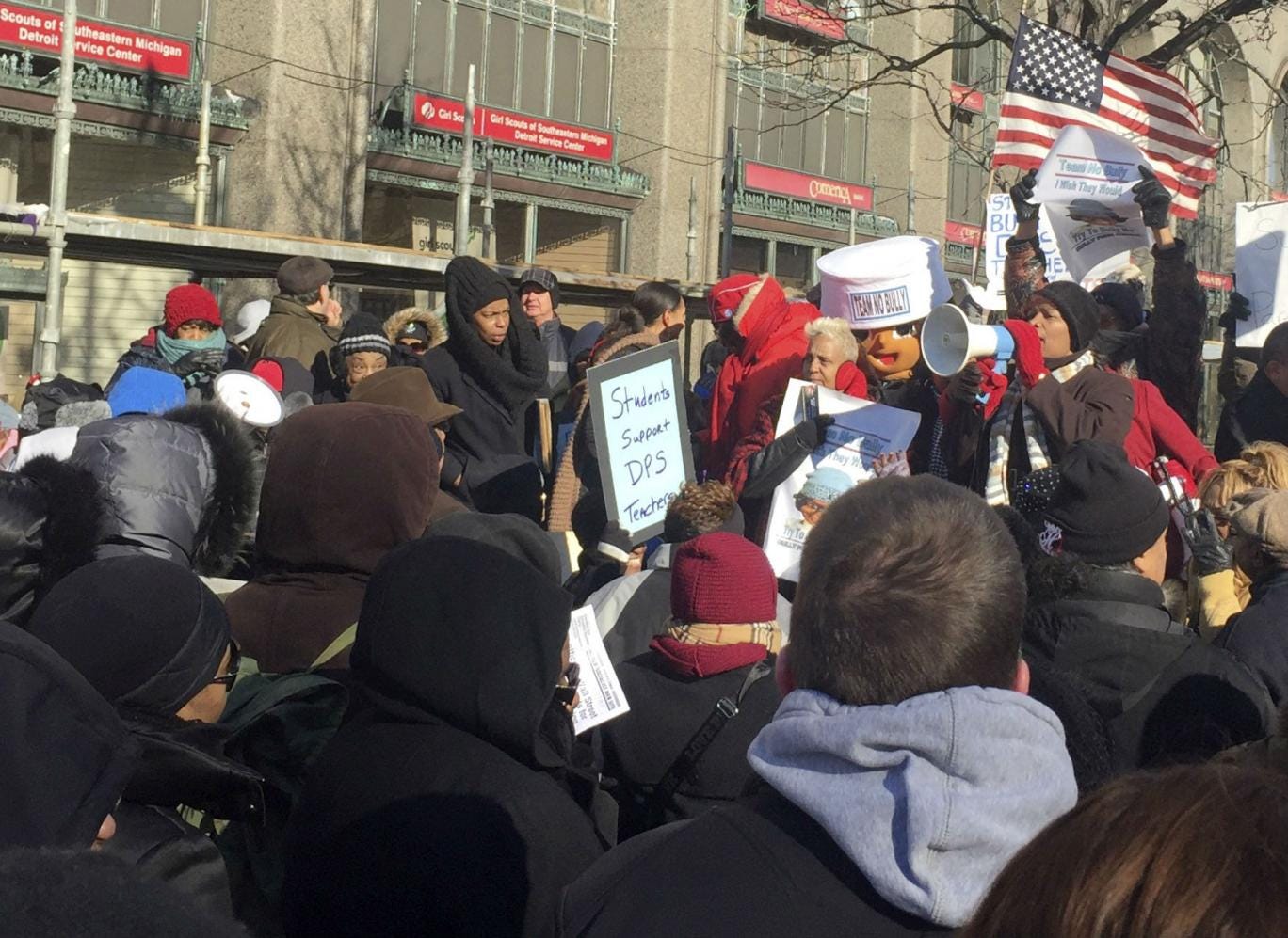 Ivy Bailey, interim president of Detroit's teacher’s union, said that teachers had endured enough and were taking the chance to highlight the problem the day that Mr Obama visits the North American International Auto Show.
