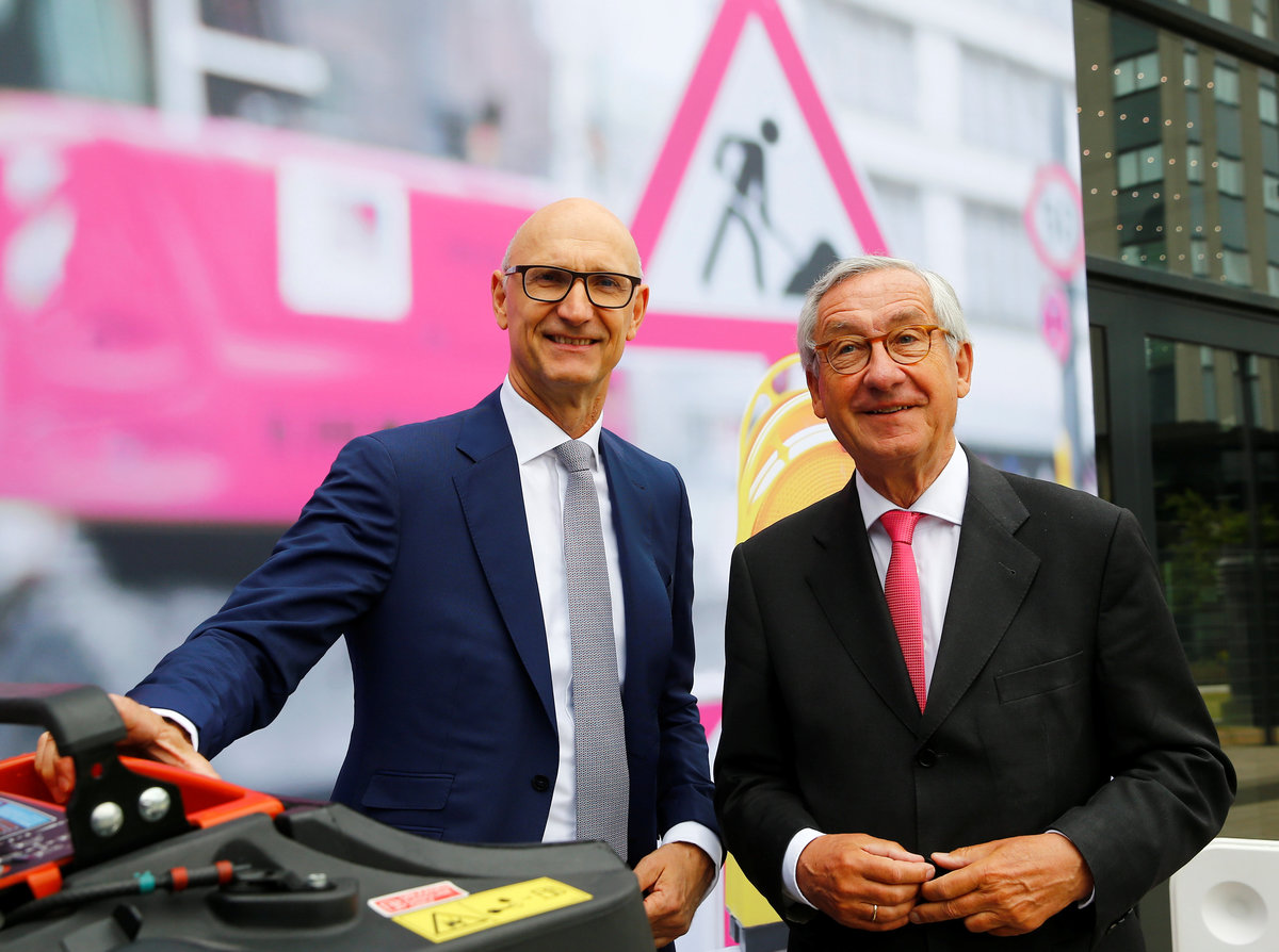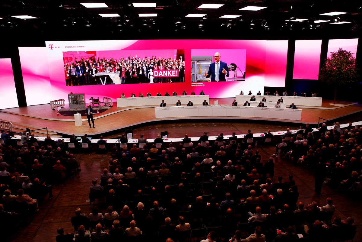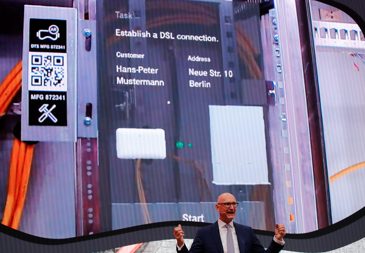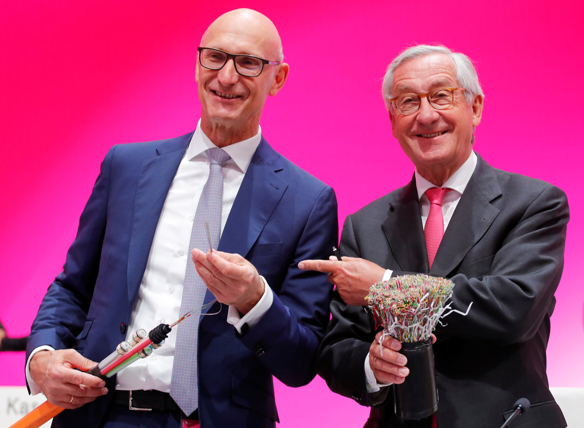 Timotheus Hoettges, Chief Executive Officer of Germany's telecommunications giant Deutsche Telekom AG, poses before the annual shareholders' meeting of the company in Bonn, Germany May 17, 2018. REUTERS/Wolfgang RattayTimotheus Hoettges, Chief Executive Officer of Germany's telecommunications giant Deutsche Telekom AG, speaks at the annual shareholders' meeting of the company in Bonn, Germany May 17, 2018. REUTERS/Wolfgang RattayTimotheus Hoettges, Chief Executive Officer of Germany's telecommunications giant Deutsche Telekom AG, speaks during the annual shareholders' meeting of the company in Bonn, Germany May 17, 2018. REUTERS/Wolfgang RattayTimotheus Hoettges, Chief Executive Officer of Germany's telecommunications giant Deutsche Telekom AG, speaks during the annual shareholders' meeting of the company in Bonn, Germany May 17, 2018. REUTERS/Wolfgang RattayTimotheus Hoettges, Chief Executive Officer of Germany's telecommunications giant Deutsche Telekom AG, takes off his helmet as he poses for a picture at the annual shareholders' meeting of the company in Bonn, Germany May 17, 2018. REUTERS/Wolfgang RattayTimotheus Hoettges, Chief Executive Officer of Germany's telecommunications giant Deutsche Telekom AG, speaks during the annual shareholders' meeting of the company in Bonn, Germany May 17, 2018. REUTERS/Wolfgang RattayTimotheus Hoettges, Chief Executive Officer of Germany's telecommunications giant Deutsche Telekom AG, and chairman of the supervisory board Ulrich Lehner look on before the annual shareholders' meeting of the company in Bonn, Germany May 17, 2018. REUTERS/Wolfgang RattayTimotheus Hoettges (C), Chief Executive Officer of Germany's telecommunications giant Deutsche Telekom AG, poses with board members before the annual shareholders' meeting of the company in Bonn, Germany May 17, 2018. REUTERS/Wolfgang RattayTimotheus Hoettges, Chief Executive Officer of Germany's telecommunications giant Deutsche Telekom AG, and chairman of the supervisory board Ulrich Lehner pose before the annual shareholders' meeting of the company in Bonn, Germany May 17, 2018. REUTERS/Wolfgang Rattay