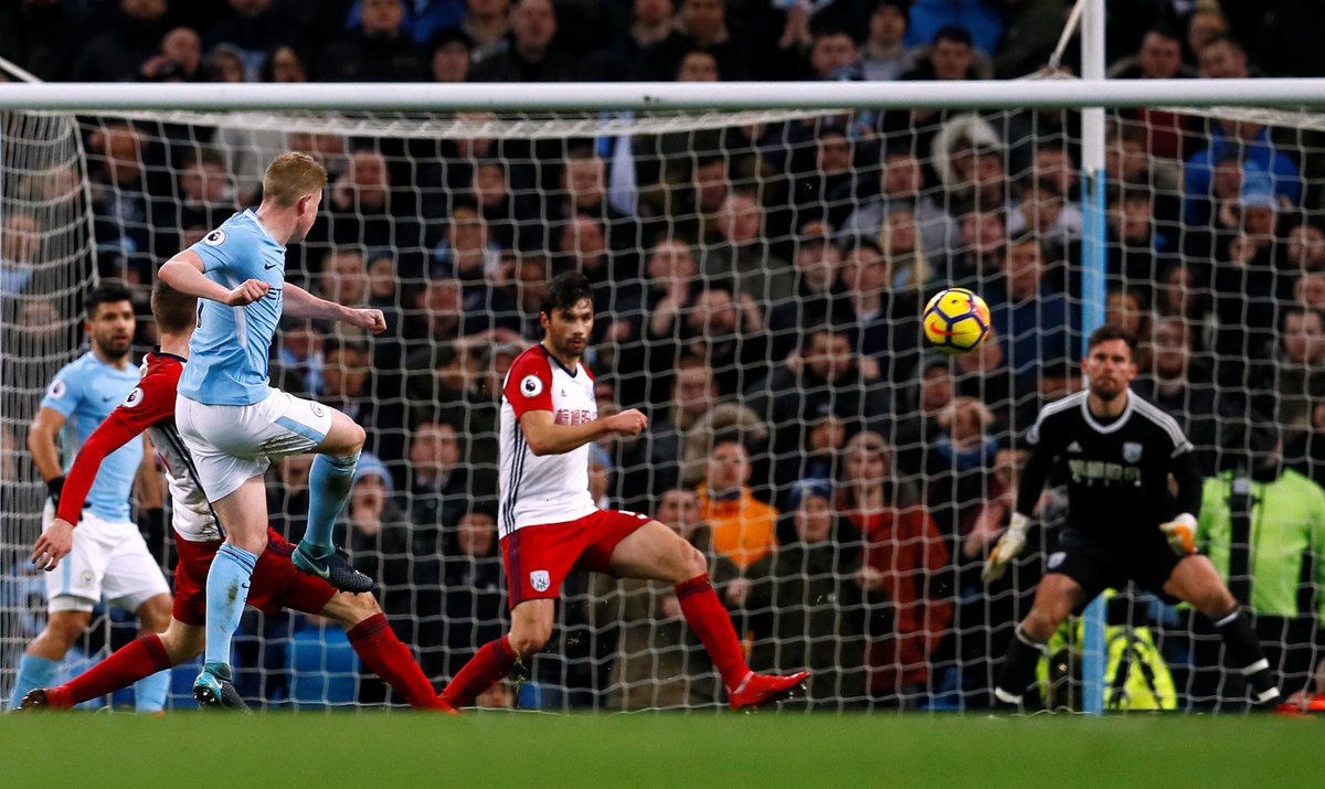 MANCHESTER, England (Reuters) - Belgian Kevin De Bruyne delivered another virtuoso performance as Premier League leaders Manchester City beat bottom club West Bromwich Albion 3-0 at the Etihad on Wednesday to restore a 15-point lead at the top.