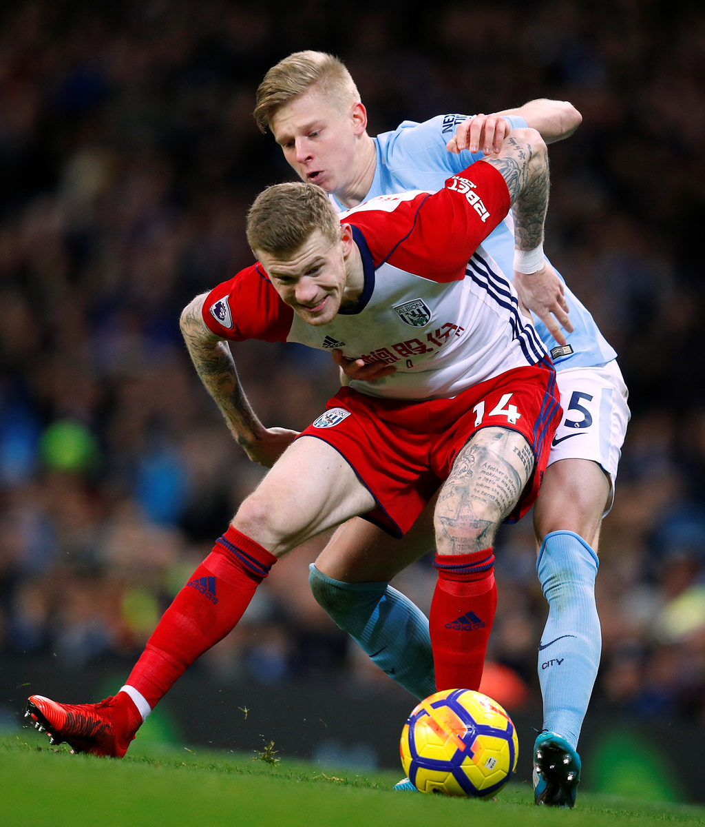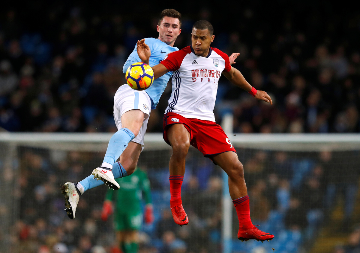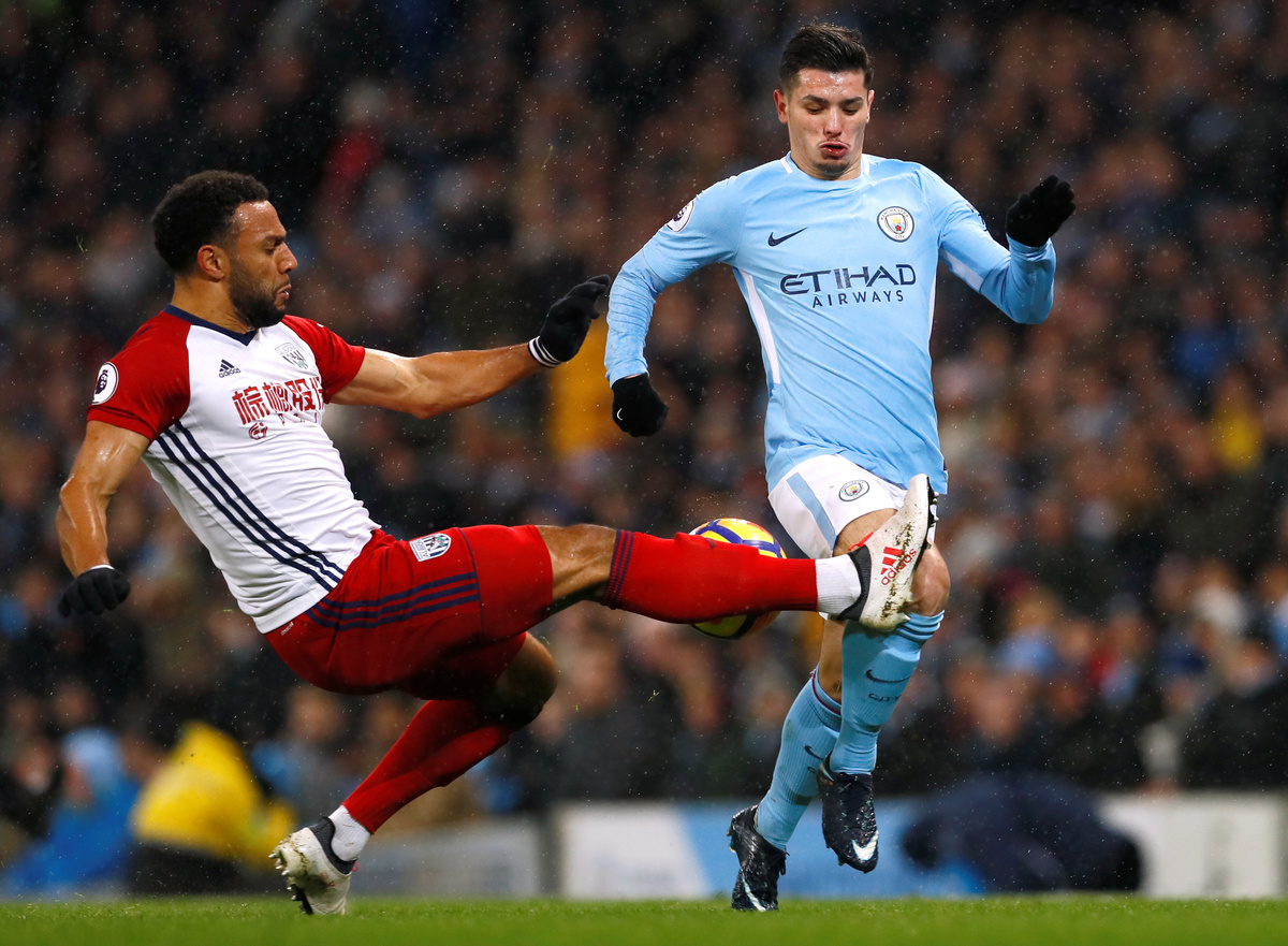 Soccer Football - Premier League - Manchester City vs West Bromwich Albion - Etihad Stadium, Manchester, Britain - January 31, 2018 West Bromwich Albion's Allan Nyom in action with Manchester City's Raheem Sterling Action Images via Reuters/Jason Cairnduff Soccer Football - Premier League - Manchester City vs West Bromwich Albion - Etihad Stadium, Manchester, Britain - January 31, 2018 Manchester City's Kevin De Bruyne hits the crossbar with a shot Action Images via Reuters/Jason Cairnduff Soccer Football - Premier League - Manchester City vs West Bromwich Albion - Etihad Stadium, Manchester, Britain - January 31, 2018 Manchester City's Aymeric Laporte in action with West Bromwich Albion’s Sam Field REUTERS/Phil Noble Soccer Football - Premier League - Manchester City vs West Bromwich Albion - Etihad Stadium, Manchester, Britain - January 31, 2018 West Bromwich Albion's James McClean in action with Manchester City's Oleksandr Zinchenko REUTERS/Phil Noble Soccer Football - Premier League - Manchester City vs West Bromwich Albion - Etihad Stadium, Manchester, Britain - January 31, 2018 West Bromwich Albion's Salomon Rondon in action with Manchester City's Aymeric Laporte REUTERS/Phil Noble Soccer Football - Premier League - Manchester City vs West Bromwich Albion - Etihad Stadium, Manchester, Britain - January 31, 2018 Manchester City's Kevin De Bruyne celebrates with Raheem Sterling after scoring their second goal Action Images via Reuters/Jason Cairnduff Soccer Football - Premier League - Manchester City vs West Bromwich Albion - Etihad Stadium, Manchester, Britain - January 31, 2018 Manchester City's Sergio Aguero in action with West Bromwich Albion's Gareth McAuley and Ben Foster Action Images via Reuters/Jason Cairnduff Soccer Football - Premier League - Manchester City vs West Bromwich Albion - Etihad Stadium, Manchester, Britain - January 31, 2018 Manchester City's Kevin De Bruyne in action with West Bromwich Albion's James McClean Action Images via Reuters/Jason Cairnduff Soccer Football - Premier League - Manchester City vs West Bromwich Albion - Etihad Stadium, Manchester, Britain - January 31, 2018 Manchester City's Brahim Diaz in action with West Bromwich Albion's Matt Phillips Action Images via Reuters/Jason Cairnduff Soccer Football - Premier League - Manchester City vs West Bromwich Albion - Etihad Stadium, Manchester, Britain - January 31, 2018 West Bromwich Albion's Matt Phillips is shown a yellow card by referee Bobby Madley Action Images via Reuters/Jason Cairnduff Soccer Football - Premier League - Manchester City vs West Bromwich Albion - Etihad Stadium, Manchester, Britain - January 31, 2018 Manchester City's Sergio Aguero scores their third goal Action Images via Reuters/Jason Cairnduff Soccer Football - Premier League - Manchester City vs West Bromwich Albion - Etihad Stadium, Manchester, Britain - January 31, 2018 Manchester City's Sergio Aguero celebrates scoring their third goal Action Images via Reuters/Jason Cairnduff Soccer Football - Premier League - Manchester City vs West Bromwich Albion - Etihad Stadium, Manchester, Britain - January 31, 2018 West Bromwich Albion’s Ahmed Hegazi reacts Action Images via Reuters/Jason Cairnduff