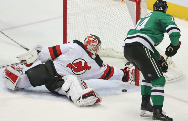 First, Greene, from the right corner of the Devils' zone, threw a blind, backhand pass in front of the crease directly to Stars right wing Alexander Radulov, who accepted the gift and took three strides to the Devils' crease and slipped a forehander past Schneider to tie the game at 1 at 6:18.