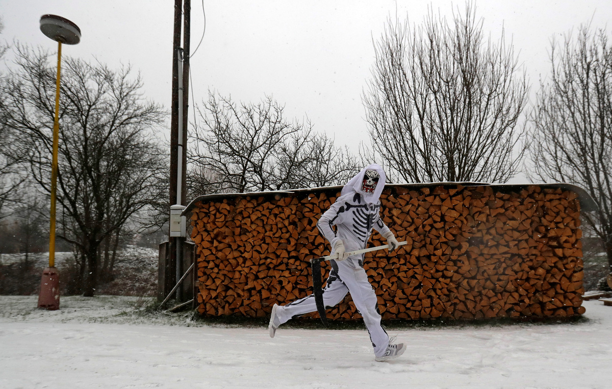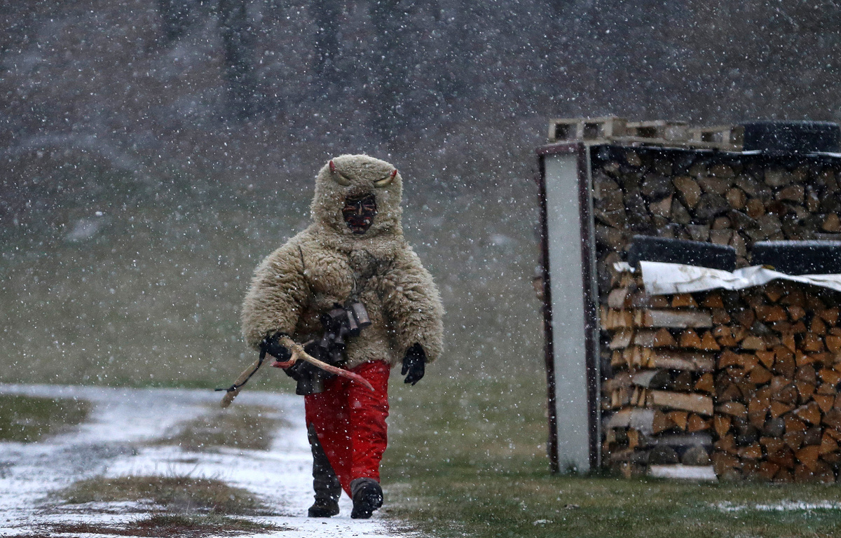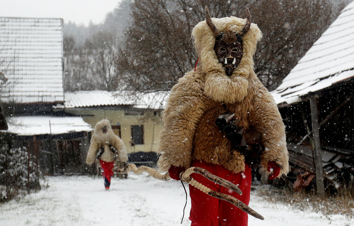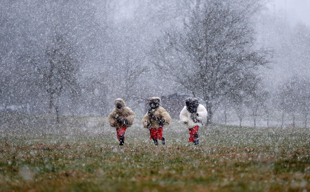 Chased in the snow by 40 fearsome figures in sheepskin masks, the village youngsters saw it as good fun.
