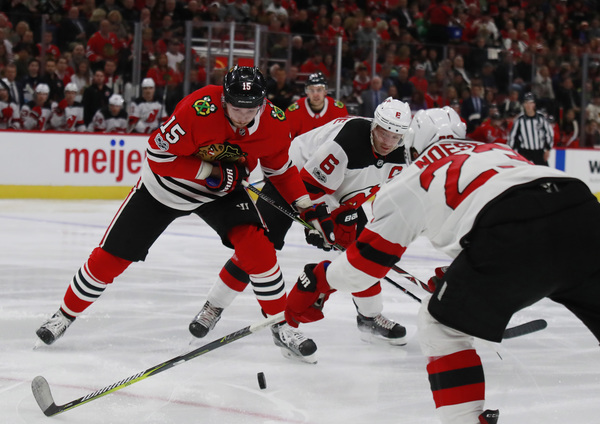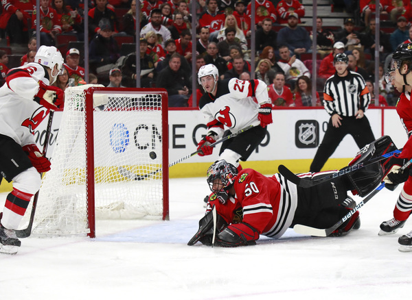 The teams, both playing on back-to-back nights, traded four-goal periods, the Devils (11-4-2) in the second as part of a string of five unanswered goals after the Blackhawks (8-8-2) had taken a 4-1 lead in the first period.