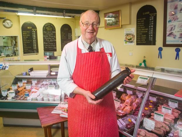 “That black pudding saved me,” he said. “Frozen burgers are nice but you don’t want a frozen butcher!”