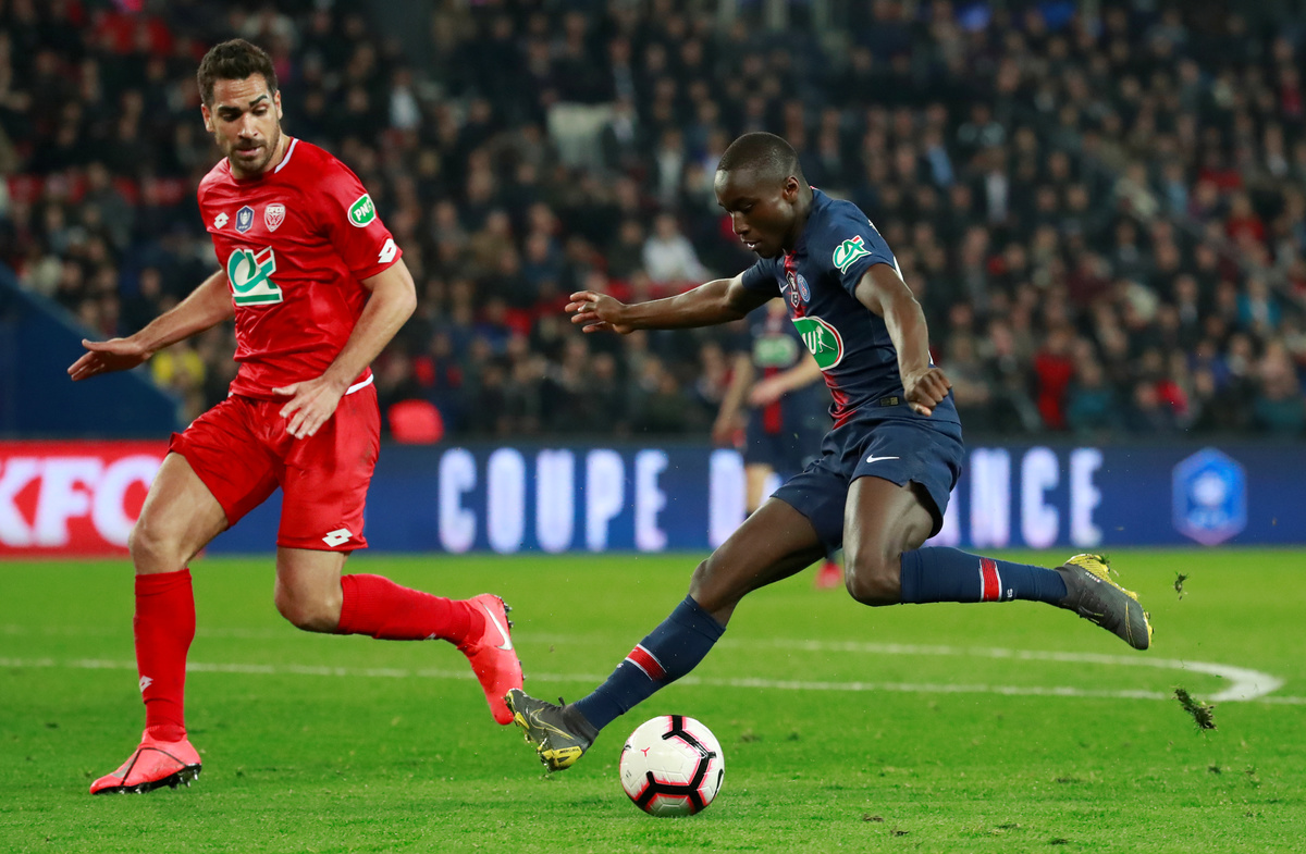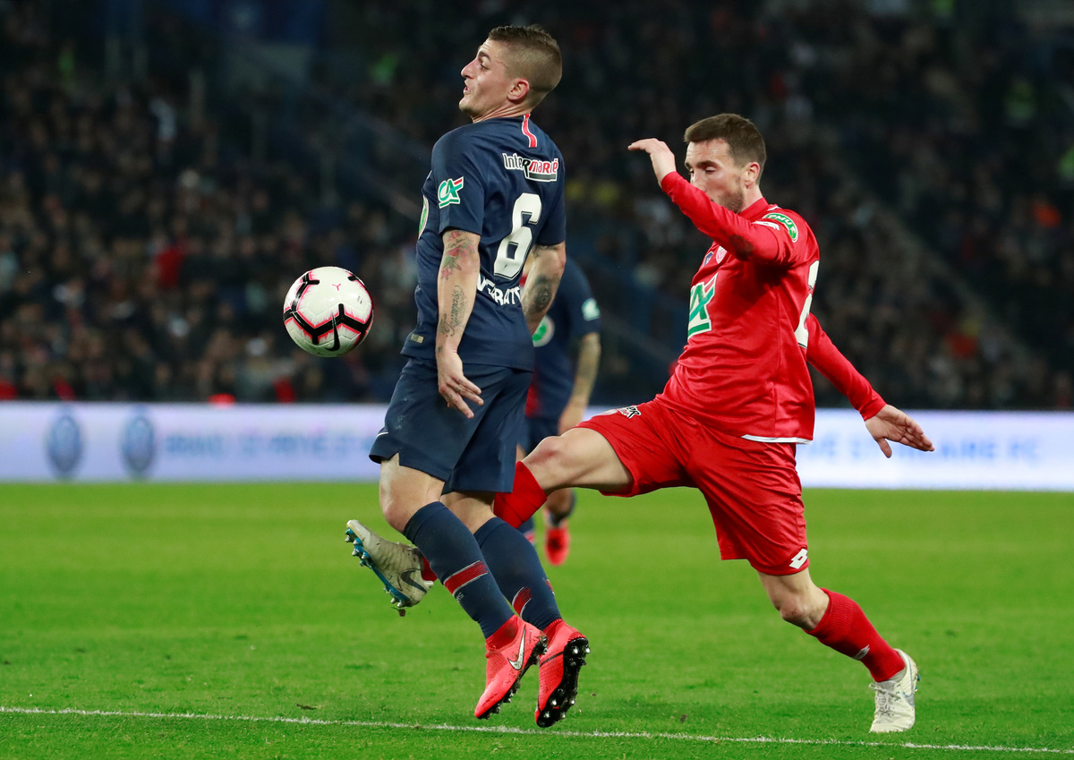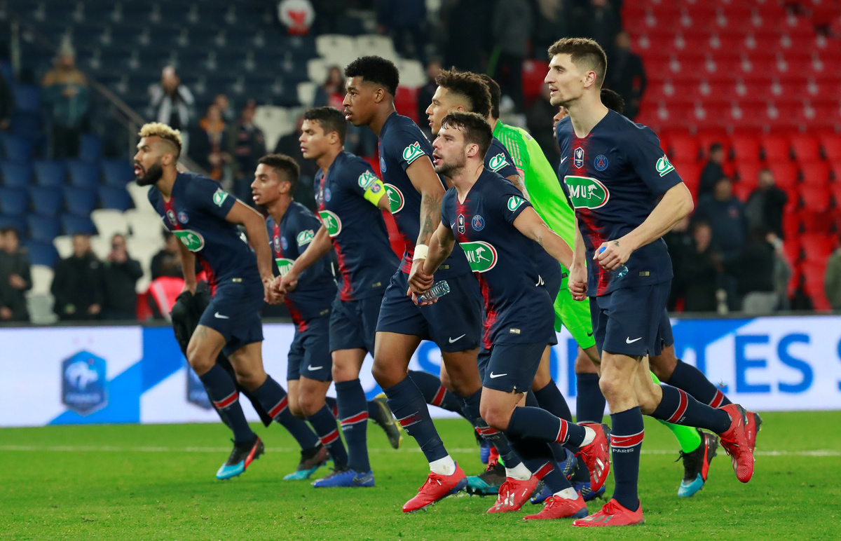 Soccer Football - Coupe de France - Quarter Final - Paris St Germain vs Dijon - Parc des Princes, Paris, France - February 26, 2019 Paris St Germain players celebrate after the match REUTERS/Gonzalo FuentesSoccer Football - Coupe de France - Quarter Final - Paris St Germain vs Dijon - Parc des Princes, Paris, France - February 26, 2019 Paris St Germain's Maxim Choupo-Moting in action with Dijon's Senou Coulibaly REUTERS/Gonzalo FuentesSoccer Football - Coupe de France - Quarter Final - Paris St Germain vs Dijon - Parc des Princes, Paris, France - February 26, 2019 Paris St Germain's Moussa Diaby in action with Dijon's Wesley Lautoa REUTERS/Gonzalo FuentesSoccer Football - Coupe de France - Quarter Final - Paris St Germain vs Dijon - Parc des Princes, Paris, France - February 26, 2019 Paris St Germain's Maxim Choupo-Moting celebrates their third goal scored by Thomas Meunier REUTERS/Gonzalo FuentesSoccer Football - Coupe de France - Quarter Final - Paris St Germain vs Dijon - Parc des Princes, Paris, France - February 26, 2019 Paris St Germain's Marco Verratti in action with Dijon's Romain Amalfitano REUTERS/Gonzalo Fuentes
