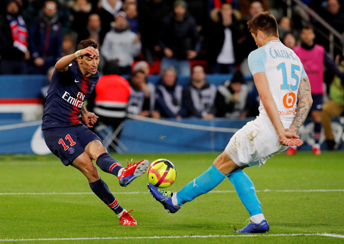 PARIS (Reuters) - Angel Di Maria delivered a near-perfect performance, scoring two and setting up another as runaway leaders Paris St Germain beat 10-man Olympique de Marseille 3-1 at home on Sunday.