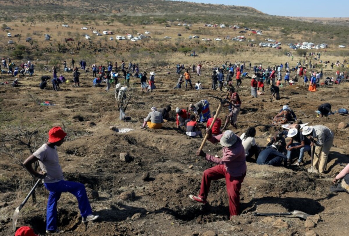 The people travelled from across South Africa to join villagers who have been digging since Saturday, after a herd man who dug up the first stone on an open field, which some believe to be quartz crystals, put out the word.