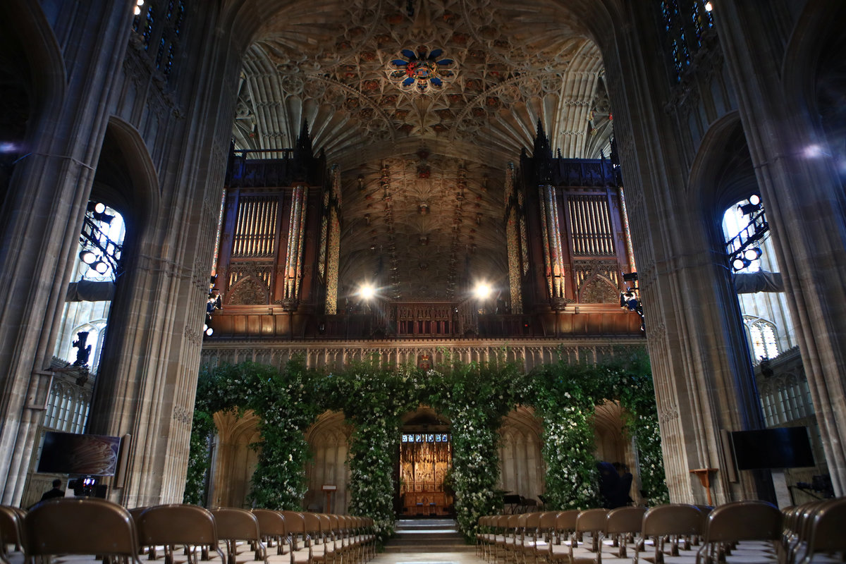 WINDSOR, England (Reuters) - White roses - the favorite flowers of Prince Harry's late mother Diana - arched over the organ loft and West Door of St George's chapel, where he will marry American actress Meghan Markle on Saturday.