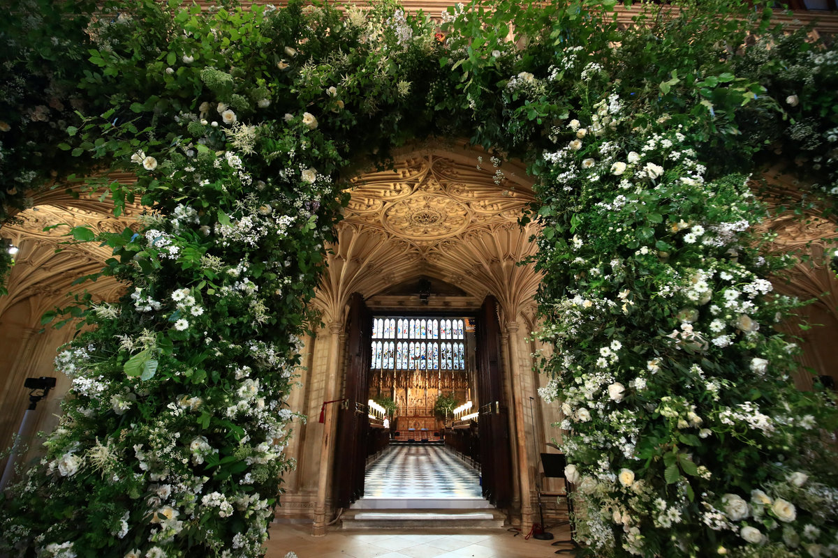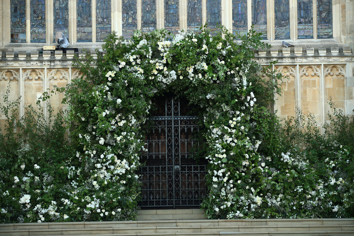 London florist Philippa Craddock used roses, peonies and foxgloves, set against beech, birch and hornbeam branches, many of them gathered from the gardens and parkland of the Crown Estate and Windsor Great Park, the royal family's press office said.
