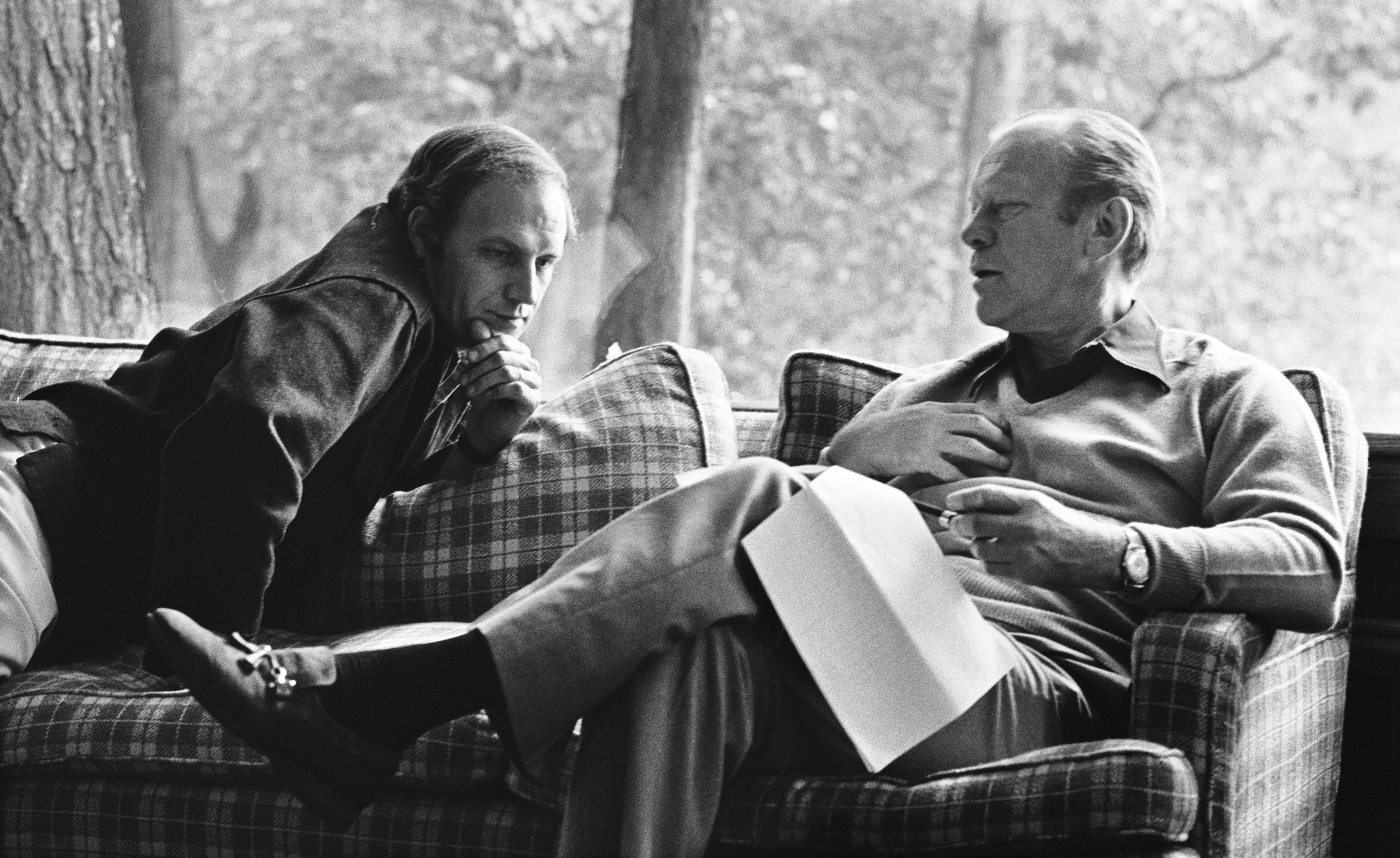 President Gerald Ford and Chief of Staff Cheney look over documents in the living room of the Aspen Lodge during a weekend trip to Camp David, on Aug. 7, 1976, in Thurmont, Md. Photo: David Hume Kennerly/Getty Images