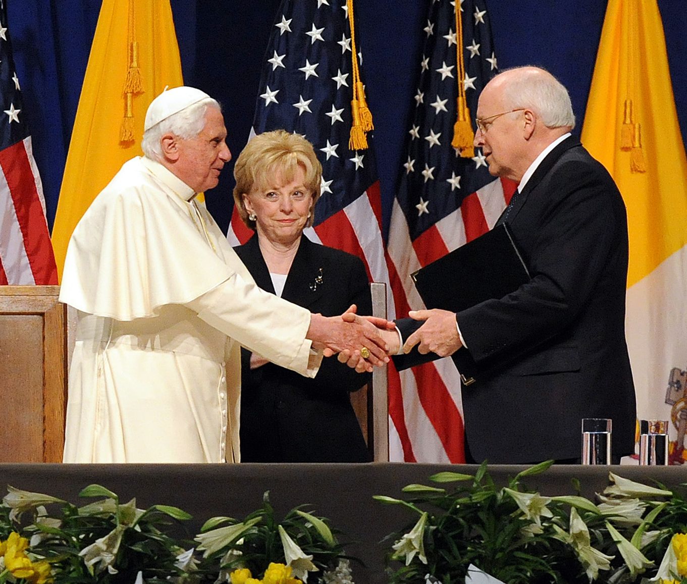 Pope Benedict XVI is greeted by Vice President Cheney and his wife, Lynne, on April 20, 2008, at John F. Kennedy International Airport. Photo: Thomas A. Ferrara/Newsday RM via Getty Images