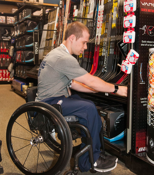 "They give you a duffle bag with USOC gear, and there was a pamphlet in there about the program. I'm from Pennsylvania, so I know what Dick's is," said Hill. "I knew my financial situation, and I needed a job." He began working in the team sports department in September, after he graduated from Penn State, where he studied rehabilitation and human services.