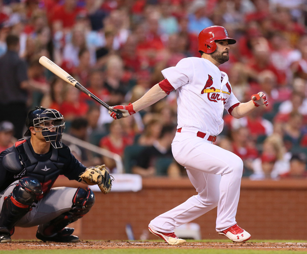 The Cardinals, who scored eight runs or more in six consecutive wins before settling for a 6-5 win Saturday, didn't get on the board Sunday until the seventh inning when Wong tripled with one out and scored on Carson Kelly's single. After Dickey walked Garcia, pitching coach Chuck Hernandez came out for a chat and left Dickey in to try to get out of the inning without further damage, which he did by striking out Fowler looking and inducing a Carpenter grounder.