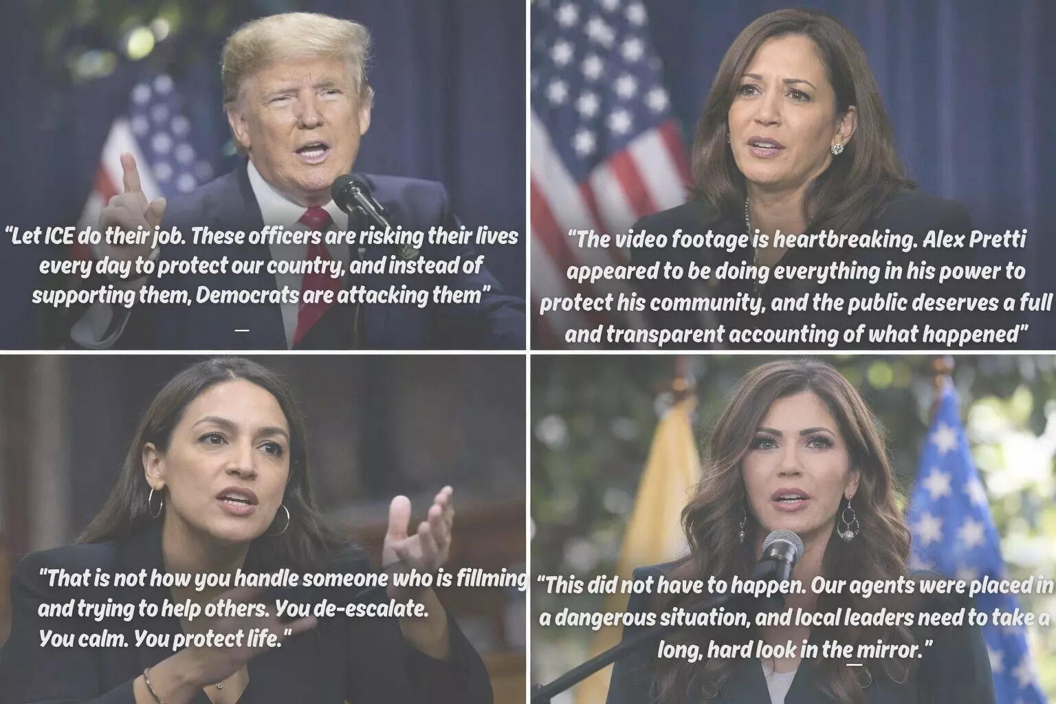 The killing of Alex Pretti triggered a fierce political backlash. Kamala Harris said the videos were “heartbreaking” and that Pretti appeared to be “doing everything in his power to protect his community,” calling for a full and transparent investigation. Progressive Democrats sharpened their criticism. Ilhan Omar said the incident appeared to be “an execution by immigration enforcement,” while Elizabeth Warren called the shooting “horrific” and demanded accountability. Republicans rallied behind federal agents. Donald Trump defended the operation, saying “let ICE do their job,” and warned that criticism of enforcement would embolden criminals. Other Republicans echoed that view, stressing officer safety and law-and-order priorities.