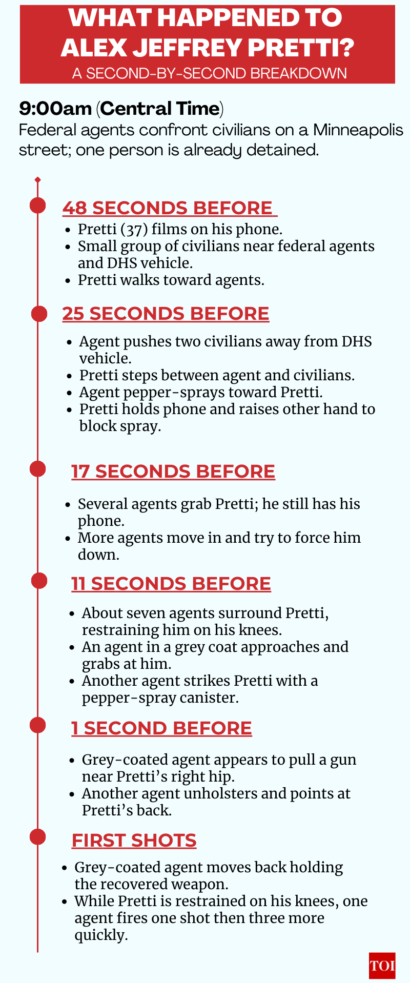 About eight seconds after Pretti is already restrained, agents are heard shouting that he has a gun. The timing suggests, according to the Times’ analysis, that agents may not have realised he was armed until after he was on the ground.