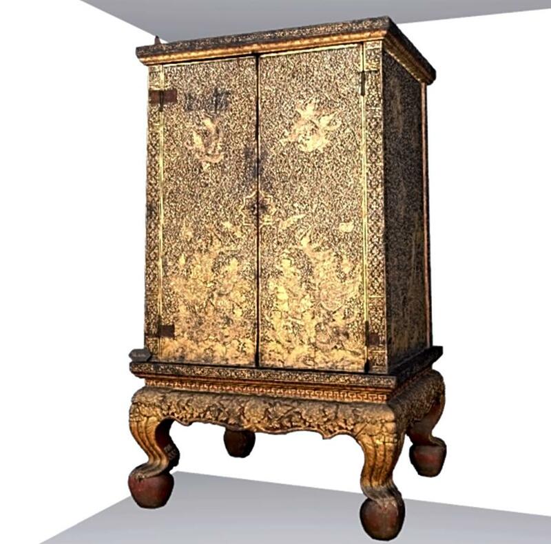 The first exhibition in the online museum began on Nov. 26 with virtual displays of cultural assets accompanied by English commentary from experts. It features a total of 22 items, including a belt buckle inlaid with colorful jewels from Malaysia and a gold-decorated cabinet used in a Thai temple.