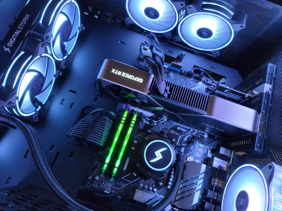 My current gaming setup is in flux so I couldn’t plug directly into my router. I happened to have an extra Wi-Fi card sitting around, so I installed that into the Prime X570-P right above the upside-down RTX 3080. No big deal, though I’d definitely have preferred Digital Storm include a solution, because not everyone is going to have extra parts lying around.