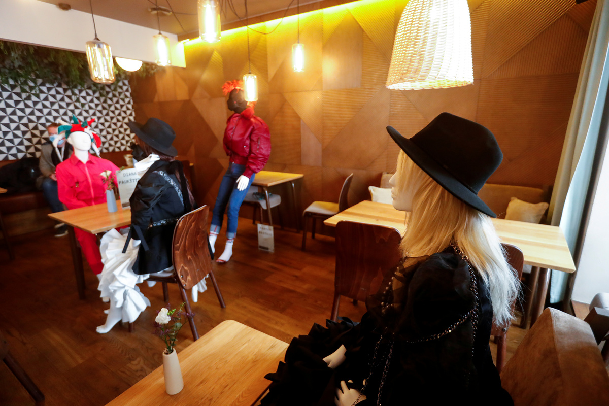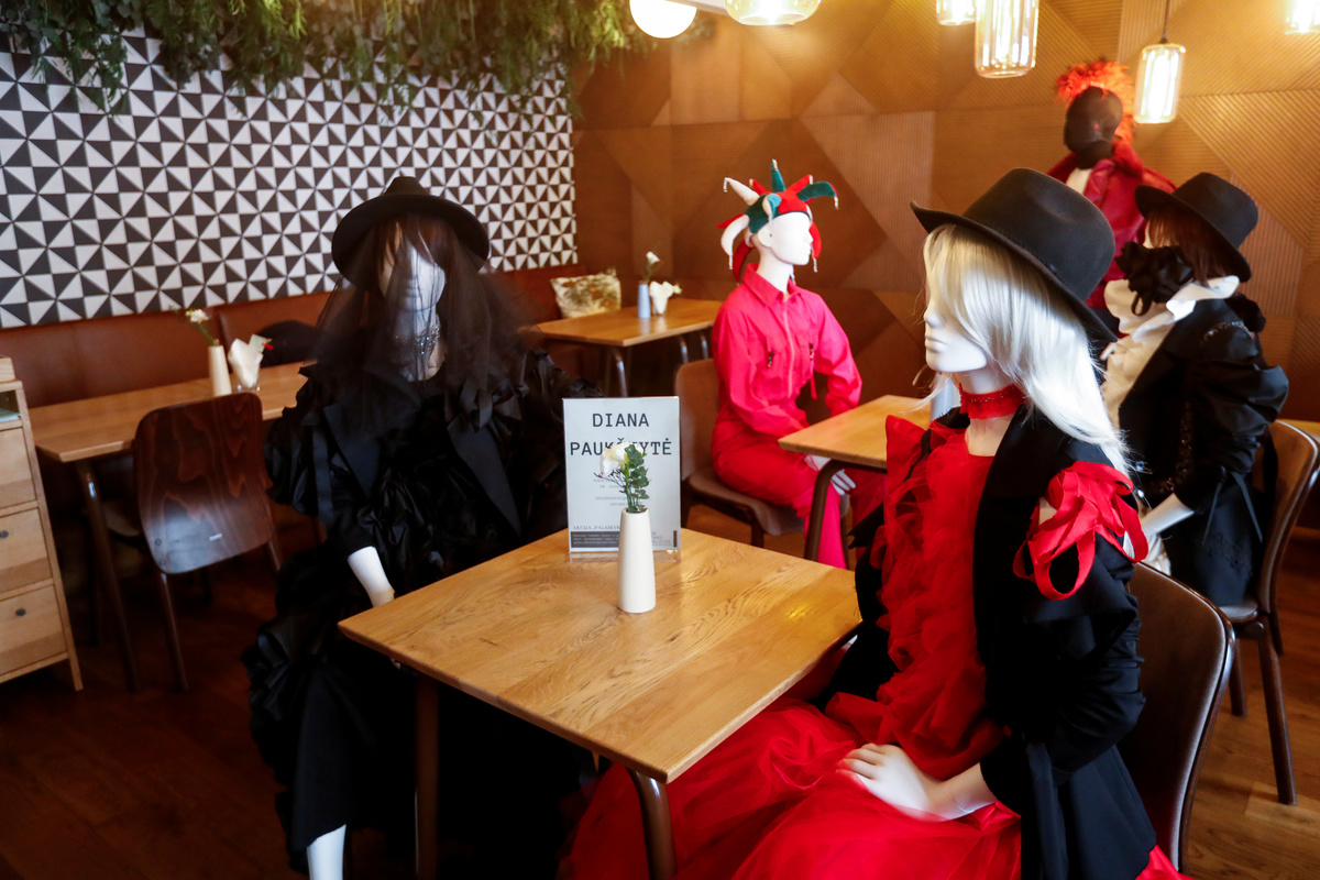 Mannequins dressed in clown hats and couture frocks have taken up seats in restaurants in Lithuania's capital, to coax real customers back after the coronavirus lockdown and help them out with social distancing.