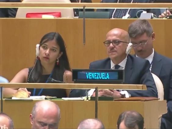 The South American state’s representatives sat stony-faced as the US President said: “The socialist dictatorship of Nicolas Maduro has inflicted terrible pain and suffering on the good people of that country.