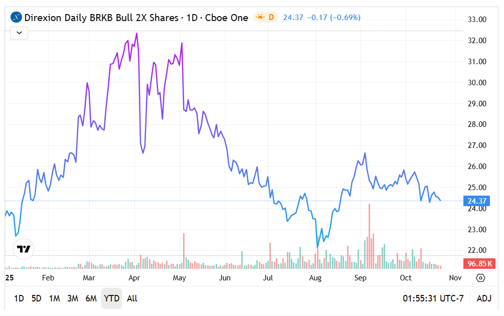 The Direxion ETFs: Still, the market is full of diverse voices, and not everyone agrees with the Oracle of Omaha. For those who want to place trades on either side of the conglomerate, financial services provider Direxion provides two countervailing products.