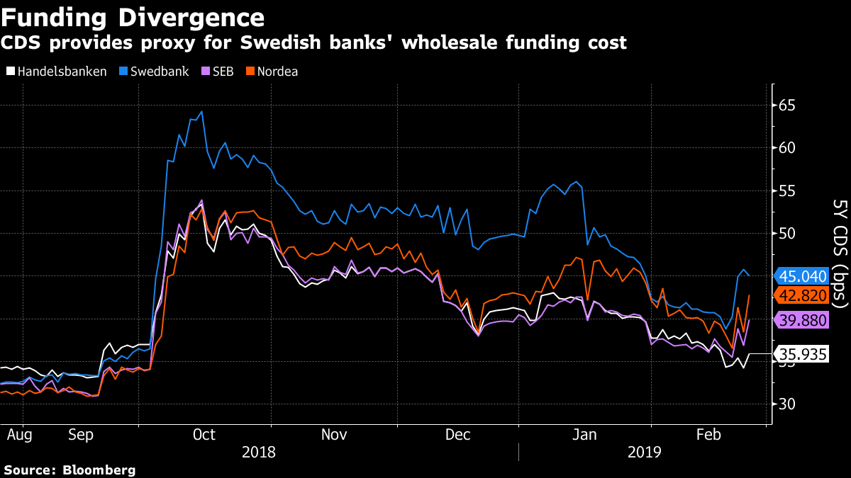 Last week, Swedbank AB was dragged into the $230 billion Estonian money-laundering scandal that has engulfed Denmark’s Danske Bank A/S. The Swedish institution is cooperating with investigations by supervisory authorities in Sweden and Estonia. The revelations have wiped about $5 billion off Swedbank shares, one-fifth of its market value, and its bond yields have spiked.