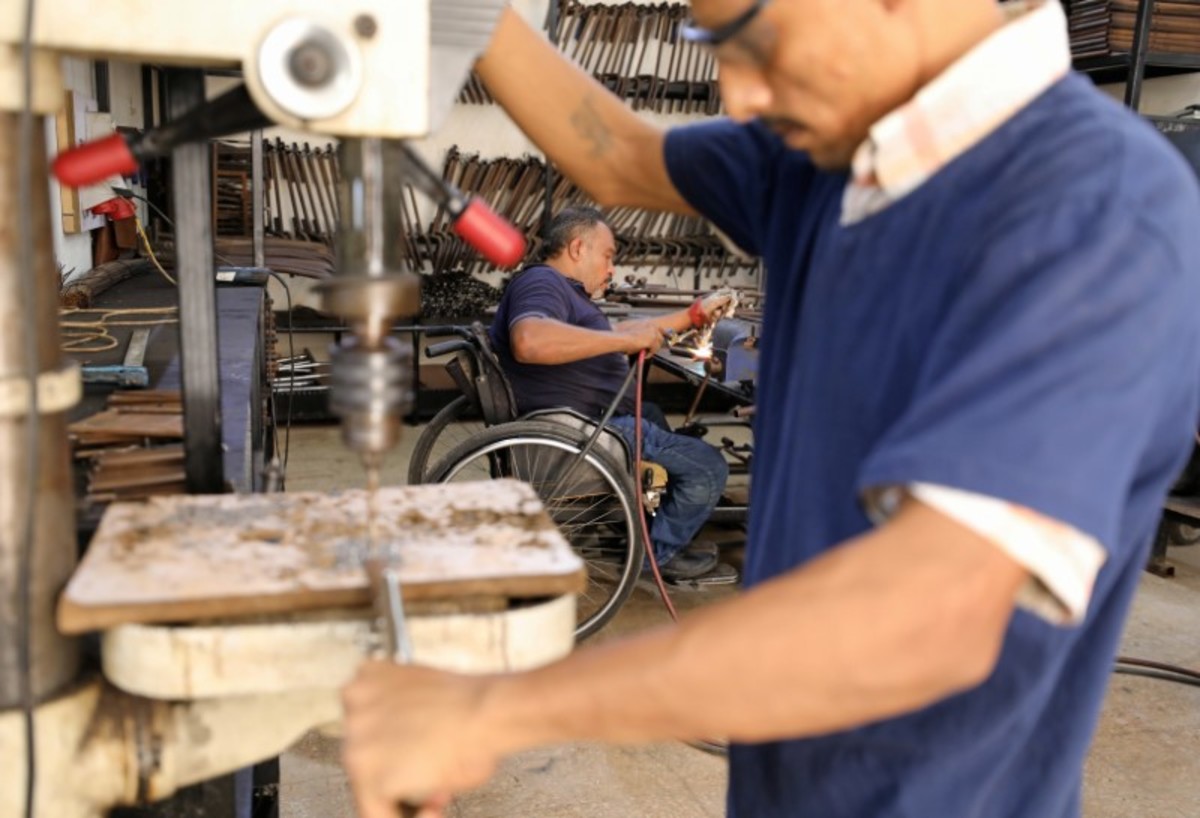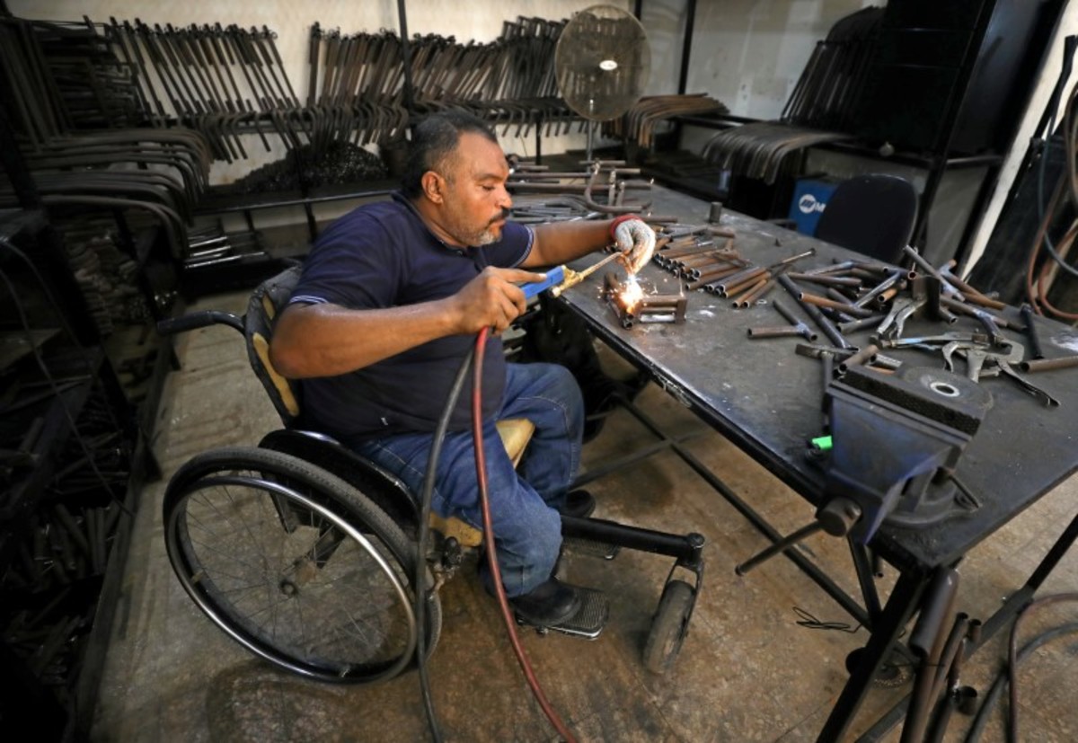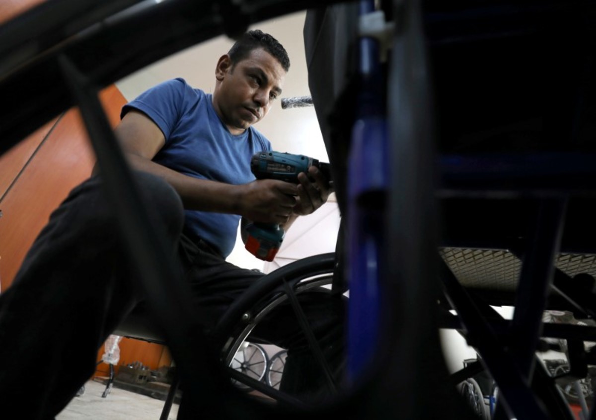 A disabled Egyptian works in a workshop that manufactures products for the poor disabled in Cairo, Egypt August 8, 2017. Picture taken August 8, 2017. REUTERS/Mohamed Abd El GhanyEgyptians work in a workshop that manufactures products for the poor disabled in Cairo, Egypt August 8, 2017. Picture taken August 8, 2017. REUTERS/Mohamed Abd El GhanyA disabled Egyptian man holds works in a workshop that manufactures products for the poor disabled in Cairo, Egypt August 8, 2017. Picture taken August 8, 2017. REUTERS/Mohamed Abd El GhanyA disabled Egyptian man works in a workshop that manufactures products for the poor disabled in Cairo, Egypt August 8, 2017. Picture taken August 8, 2017. REUTERS/Mohamed Abd El GhanyAn Egyptian man works in a workshop that manufactures products for the poor disabled in Cairo, Egypt August 8, 2017. Picture taken August 8, 2017. REUTERS/Mohamed Abd El GhanyA disabled Egyptian holds a wheelchair in a workshop that manufactures products for the poor disabled in Cairo, Egypt August 8, 2017. Picture taken August 8, 2017. REUTERS/Mohamed Abd El GhanyA disabled Egyptian man works in a workshop that manufactures products for the poor disabled in Cairo, Egypt August 8, 2017. Picture taken August 8, 2017. REUTERS/Mohamed Abd El GhanyAn Egyptian works in a workshop that manufactures products for the poor disabled in Cairo, Egypt August 8, 2017. Picture taken August 8, 2017. REUTERS/Mohamed Abd El GhanyA disabled Egyptian works in a workshop that manufactures products for the poor disabled in Cairo, Egypt August 8, 2017. Picture taken August 8, 2017. REUTERS/Mohamed Abd El GhanyA disabled Egyptian works in a workshop that manufactures products for the poor disabled in Cairo, Egypt August 8, 2017. Picture taken August 8, 2017. REUTERS/Mohamed Abd El GhanyAn Egyptian man works in a workshop that manufactures products for the poor disabled in Cairo, Egypt August 8, 2017. Picture taken August 8, 2017. REUTERS/Mohamed Abd El GhanyA disabled Egyptian man works in a workshop that manufactures products for the poor disabled in Cairo, Egypt August 8, 2017. Picture taken August 8, 2017. REUTERS/Mohamed Abd El GhanyA disabled Egyptian man works in a workshop that manufactures products for the poor disabled in Cairo, Egypt August 8, 2017. Picture taken August 8, 2017. REUTERS/Mohamed Abd El GhanyA disabled Egyptian works in a workshop that manufactures products for the poor disabled in Cairo, Egypt August 8, 2017. Picture taken August 8, 2017. REUTERS/Mohamed Abd El Ghany
