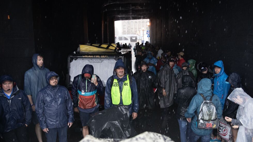 As record-setting precipitation rained all over Chicago’s much-ballyhooed stock car parade, some of the spectators fled for cover in coffee shops and parking garages while others held out hope and hunkered down trackside with rain gear and umbrellas.