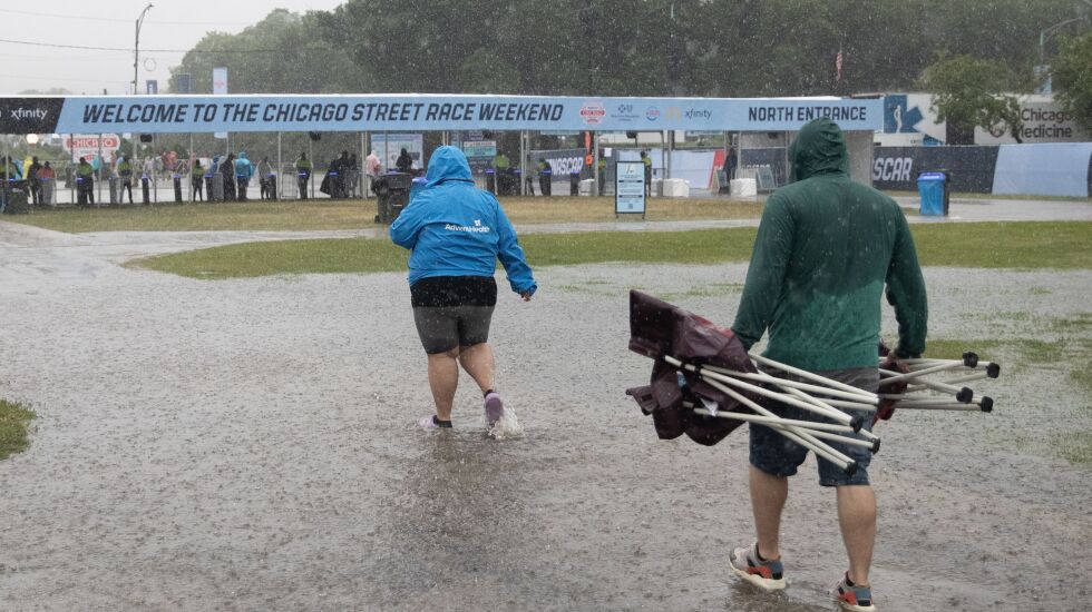 The National Weather Service recorded 3.35 inches of rain Sunday, shattering Chicago’s previous record for July 2 of 2.06 inches set in 1982. NASCAR called them “unprecedented circumstances” for an unprecedented event.