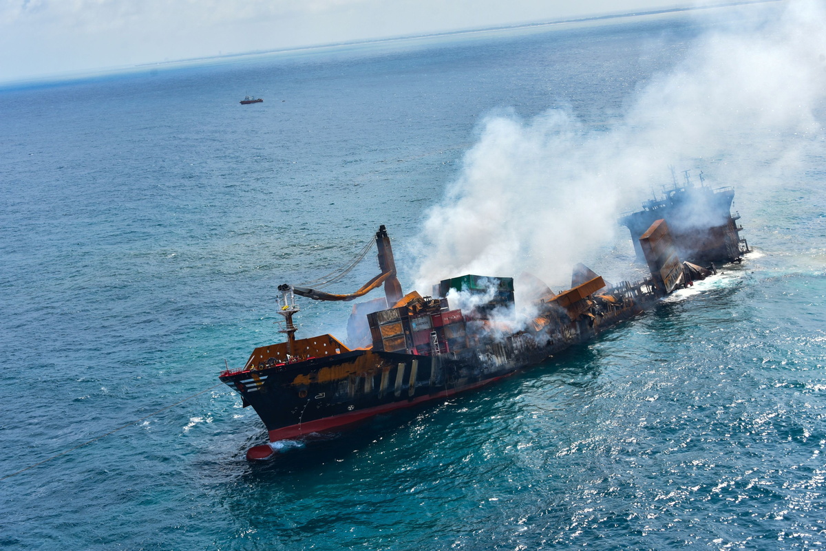The Singapore-registered MV X-Press Pearl, carrying 1,486 containers, including 25 tonnes of nitric acid along with other chemicals and cosmetics, was anchored off Sri Lanka's west coast when a fire erupted onboard after an explosion on May 20.