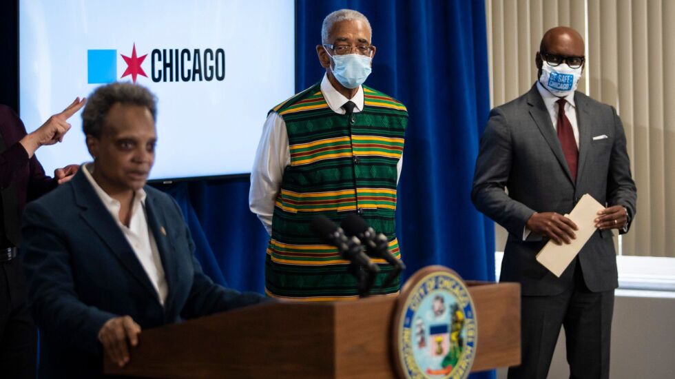 A few days after protests and looting engulfed Chicago following George Floyd’s killing by Minneapolis police in 2020, Mayor Lori Lightfoot held a news conference at City Hall with Police Supt. David Brown and U.S. Rep. Bobby Rush.
