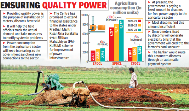 The projection of steep increase in consumption is significant particularly in the wake of discoms preparing to complete the installation of meters to pumpsets in a couple of months. Power utilities have been contending that fixation of meters will help them prevent power theft and unauthorised tapping for non-agriculture purposes.