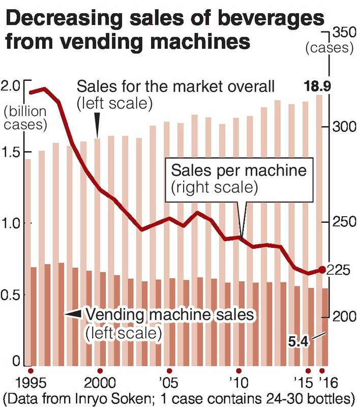 The major beverage makers are removing unprofitable machines. While not publicizing it, Coca-Cola Bottlers Japan Inc. said that it planned to remove about 22,500 machines in 2017, about 45 percent more than the previous year.