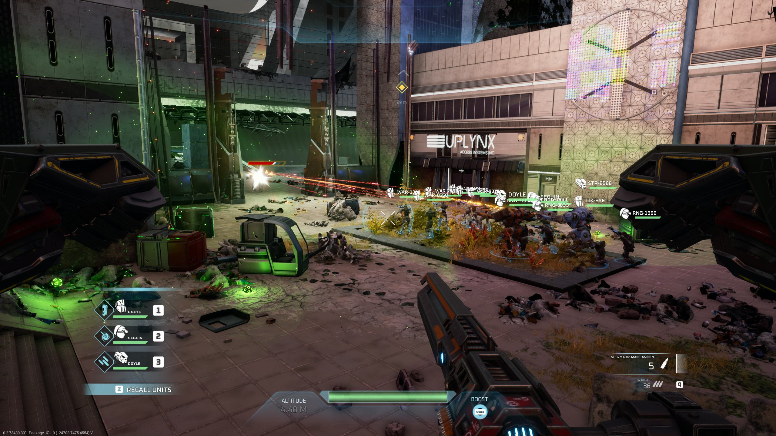 Flying above the battle and actively participating when it feels necessary, you can issue commands to your troops on the fly or tell them to move towards a location. “You fire a command pulse and they’ll move there and take autonomous cover and attack,” Lehto says, noting that a significant chunk of development focused on creating the A.I. that allows your units to follow these commands.