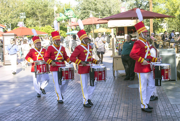 A Christmas bit of entertainment Tubert and others conceived are the "Holiday Toy Drummers." Four "toy soldiers" parade through the "Festive Foods Marketplace" as if they are toys, only as their performance progresses they get less rigid and start dancing more and more _ until recalled to the toy factory.