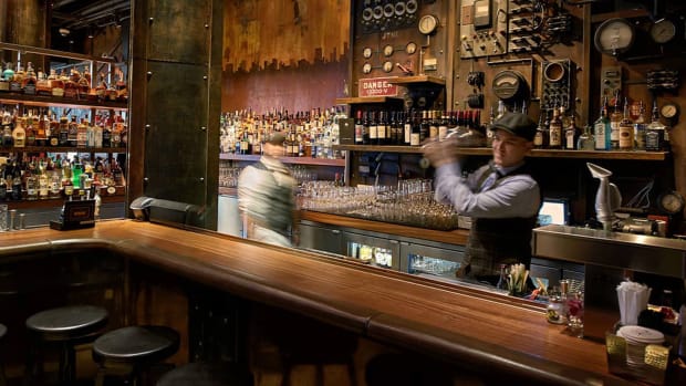Called the Porthole for Two, this highly visual cocktail is served up in what looks like a massive, flat canteen that looks like a gigantic flask, reports Disney Food Blog. It also contains fruits like strawberries, apples, pears, and blueberries, as well as aromatics such as cinnamon sticks.