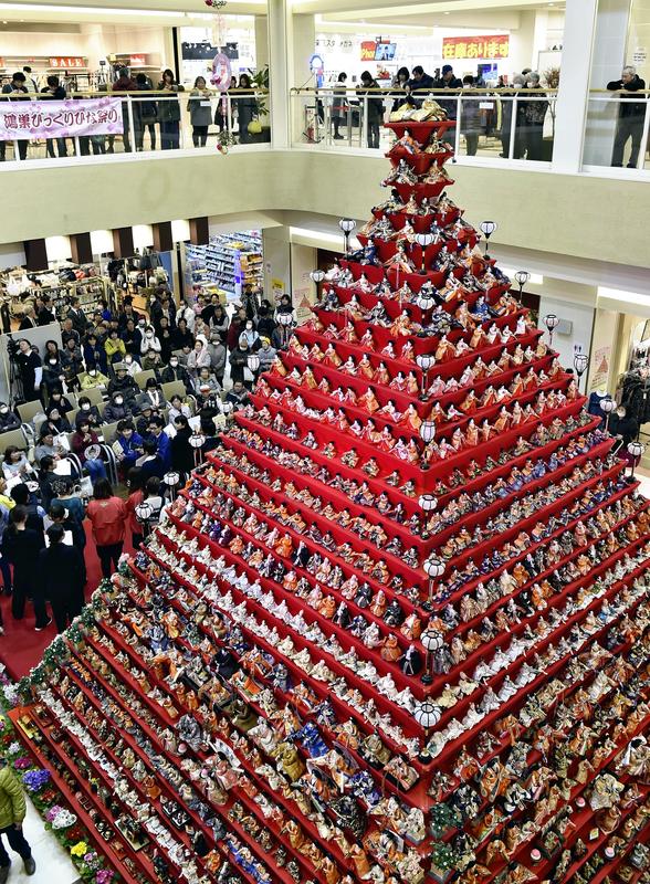 Konosu is known for producing the traditional dolls. The 31-level pyramid, which is about seven meters high, is part of the Konosu Bikkuri Hina Matsuri (Konosu surprising hina doll festival), which is marking its 14th year.