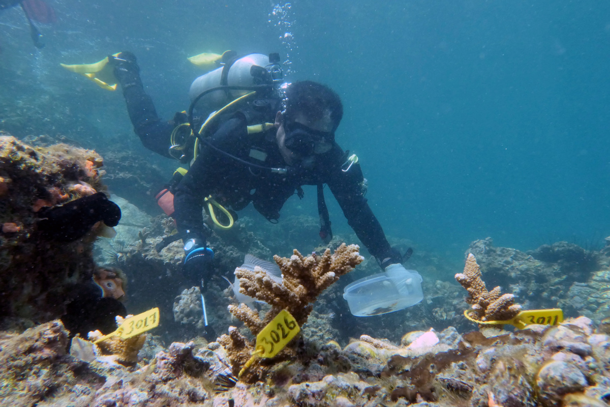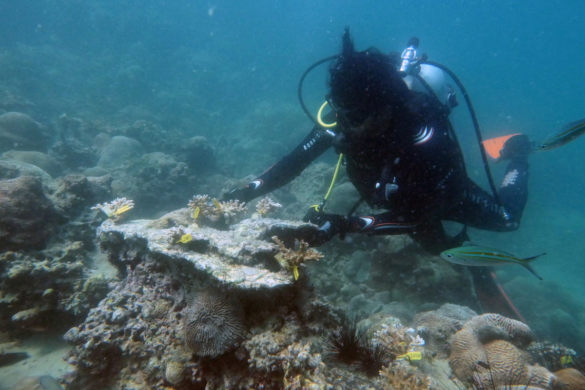 The small team and other volunteers have planted more than 9,000 corals over about 600 square metres in the past year. Within five years, they hope to cover 300,000 square metres with 1.5 million corals.