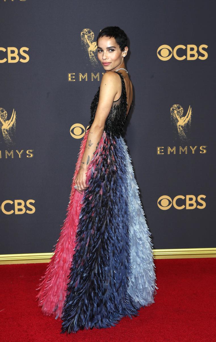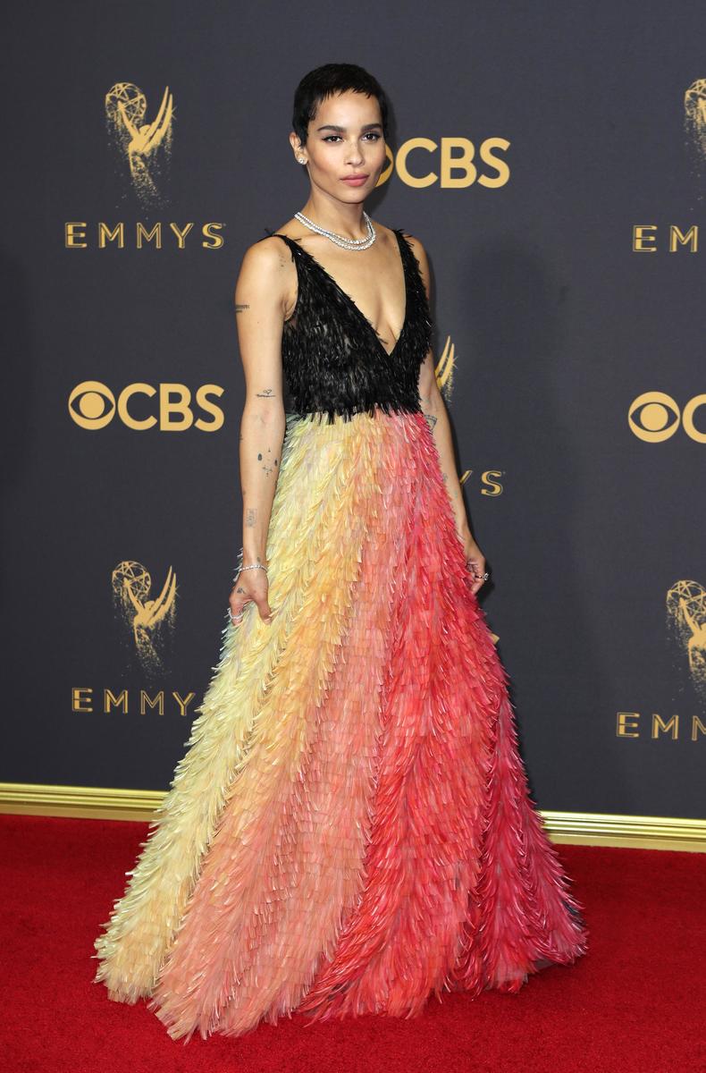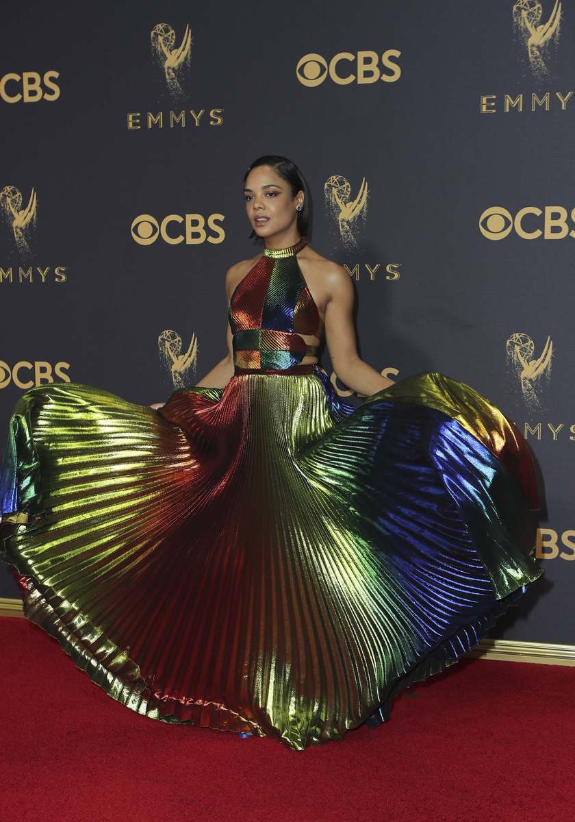 "This felt magical, fairy-like" said Zoe Kravitz ("Big Little Lies") of her Dior gown decorated with rainbow-colored ribbons, while Tessa Thompson opted for multi-colored pleated halter dress by New York designer Rosie Assoulin.